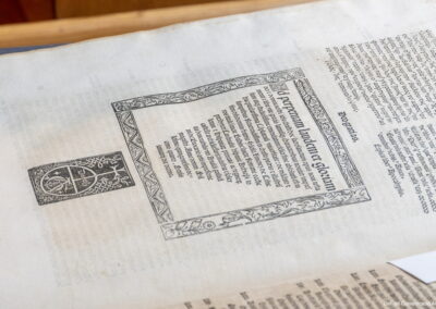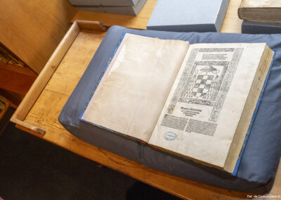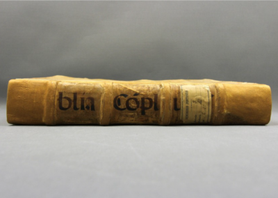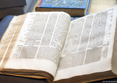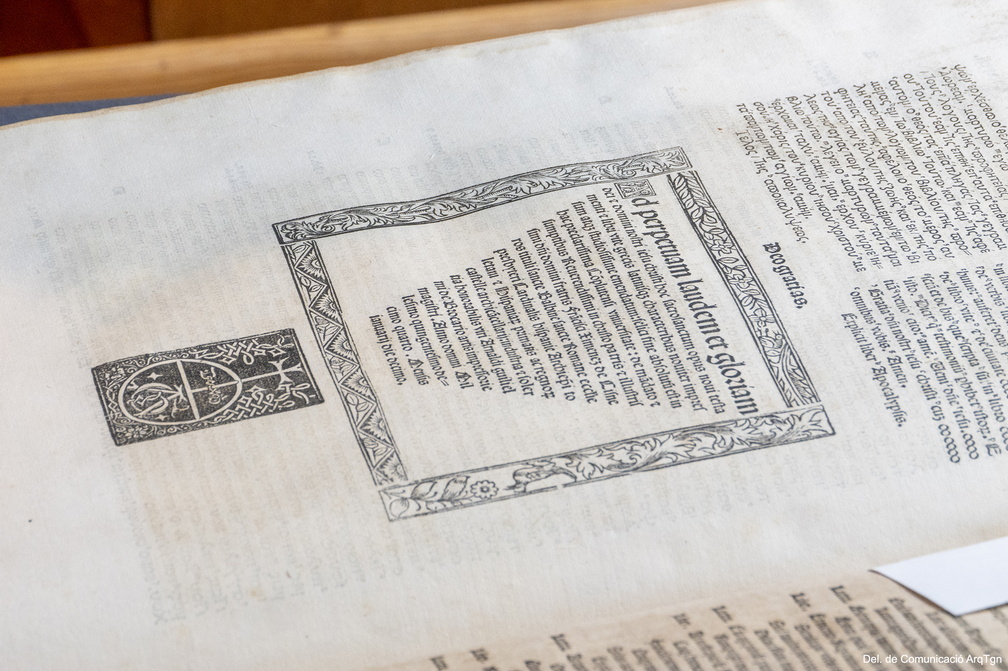 Aquesta intervenció ha permès recuperar aquest tresor bibliogràfic imprès entre 1514 i 1517 sota el mecenatge del cardenal Cisneros. Es tracta de la primera edició poliglota d’una Bíblia completa en hebreu, grec, arameu i llatí. A més, és un referent de la tipografia i la filologia humanista. L’obra està estructurada en sis volums en foli major, amb portada a dues tintes amb l’escut d’armes del cardenal Cisneros envoltat d’una orla renaixentista. Els quatre primers volums formen l’Antic Testament, mentre que el Nou Testament es troba al cinquè volum i el sisè conté els materials complementaris.
